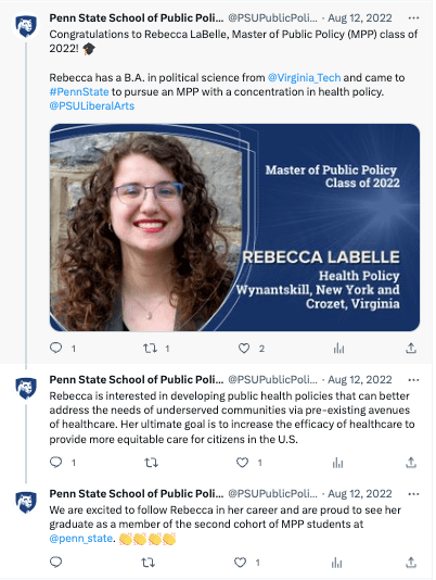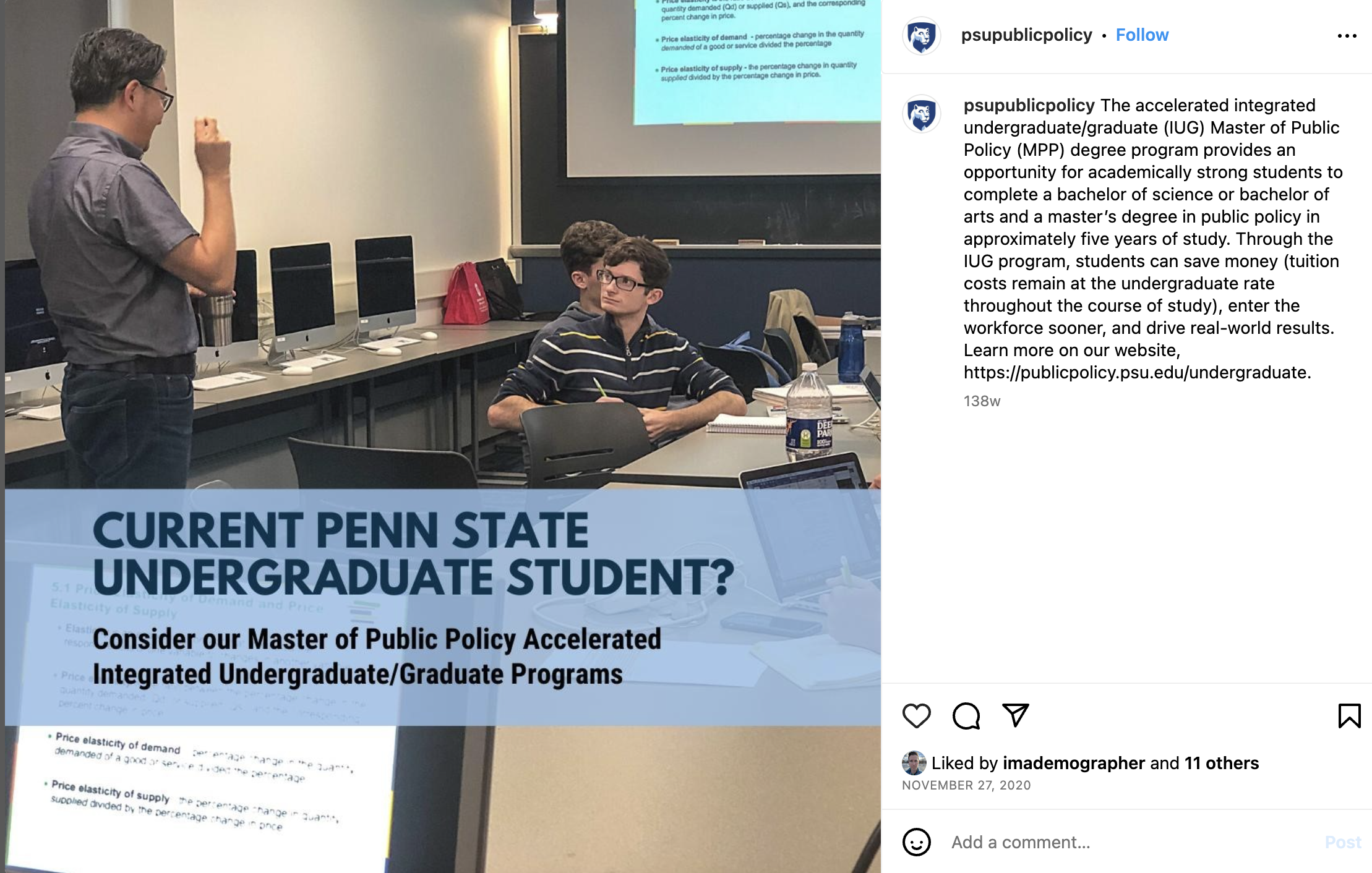 As the director of communications for the new School of Public Policy, I developed and executed a marketing plan that supported enrollment and recruitment, exceeding five-year projections for enrollment and applications in less than four years. The program grew from zero to more than 55 students in three years, generating over $1.4 million in revenue in 2022 and over $3 million in total revenue since 2019. In this role, I also provided materials to support media and equipment training for faculty and students.